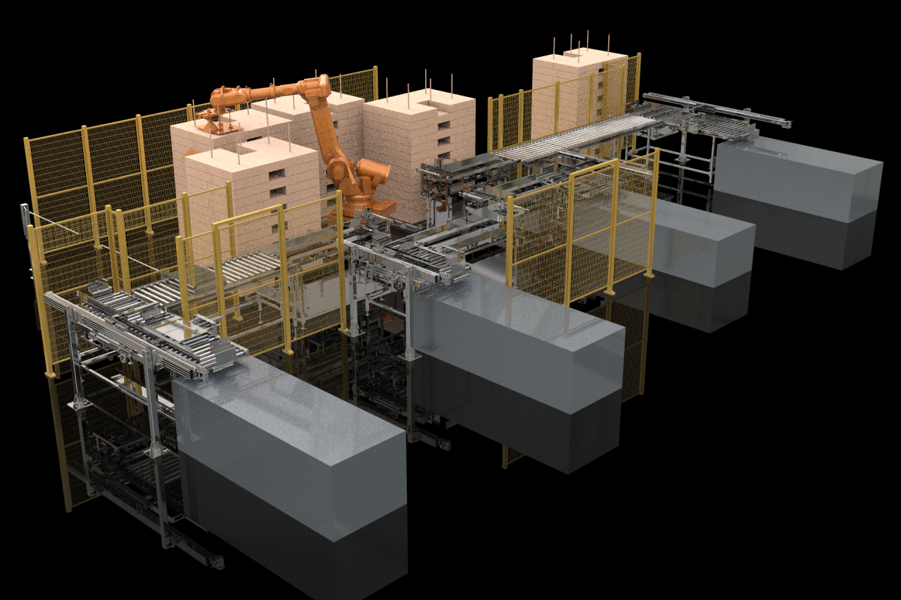 可实现一台机械手对应四台上箱机(一拖四)